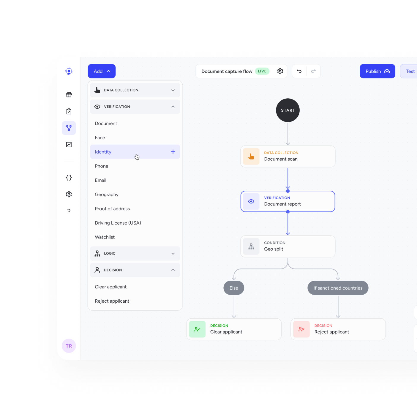 I worked on the product vision and V1 of a tool that lets customers configure their identity verification journey as they wish, with limited code, and great insights.